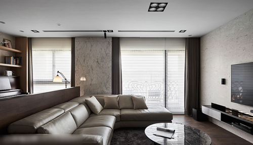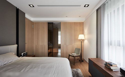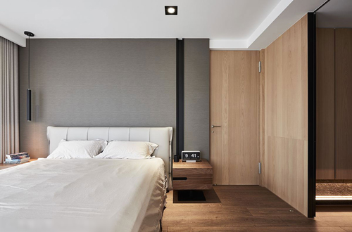 丰富空间立面,潘柏菁设计师筛选出几种既能变化空间表情,又不会造成视觉紊乱的材质进行混搭,以木质多于石材面的比例铺设,借此增加温度也丰富纹理触感。而在卧室空间,则以温感相似的材质处理,诸如皮革、木质、壁布等,以渐次加乘铺展手法,增加柔顺温和的复合调性,处处展现休憩舒眠的放松目的。